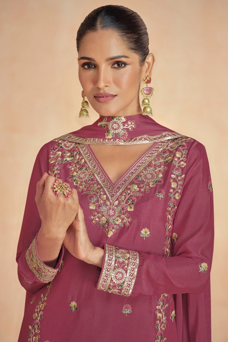 Fresh and charming, this Gajri Palazzo Set is crafted in premium Georgette and exquisitely highlighted with embroidery and sequins detailing. The Dull Santoon lining ensures comfort, while the matching Georgette dupatta completes the vibrant festive look. A perfect pick for celebrations and special occasions.